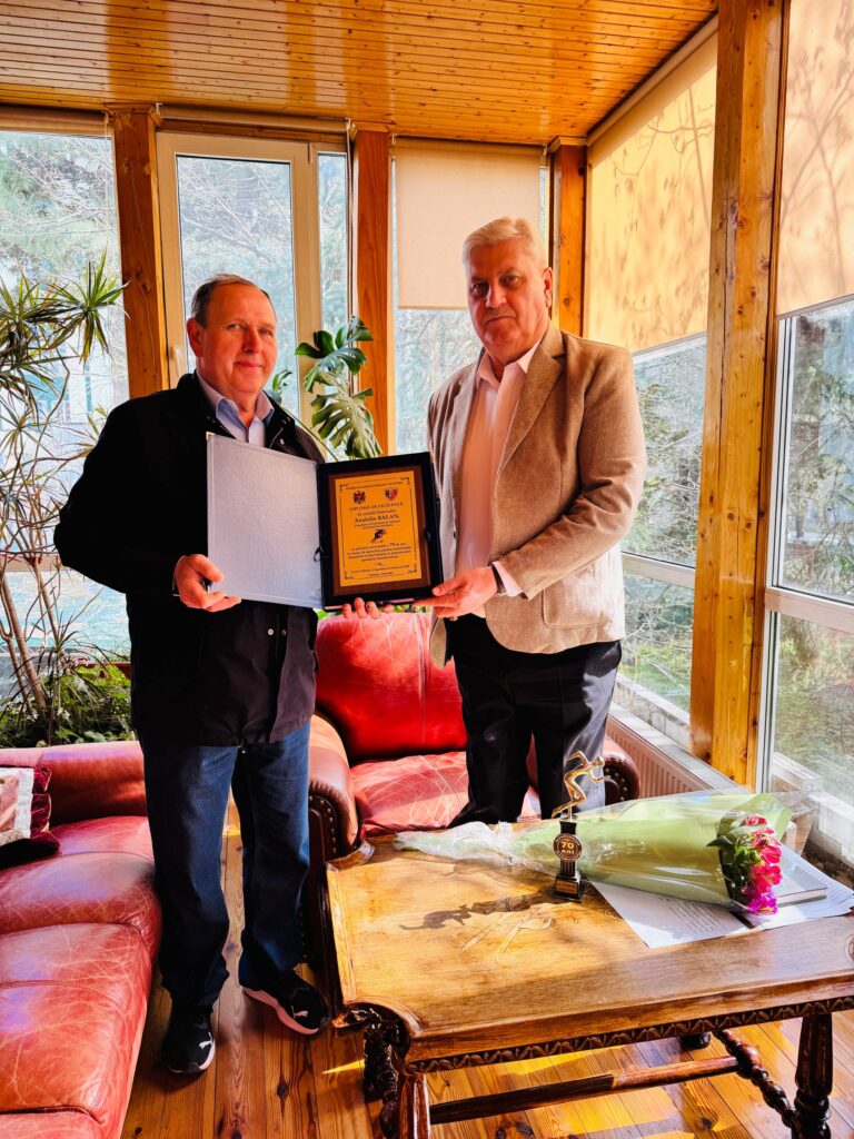 Dl Pavel Cebanu, Președintele de onoare al Federației Moldovenești de Fotbal, i-a acordat omagiatului o Diplomă de Excelență prin care își exprimă prețuirea pentru „contribuția deosebită la dezvoltarea și promovarea sportului moldovenesc”. Placheta-diplomă i-a fost prezentată de dl Eugeniu Gorceag, Președinte al Consiliului de Supraveghere al FAM. Un trofeu special pentru aniversare a fost creat de renumitul sculptor Veaceslav Jiglițchi, Cetățean de Onoare al mun. Chișinău, autor al statuii Excelența Olimpică și al altor monumente instalate pe străzile și în parcurile Capitalei, deținător al premiului Comitetului Internațional Olimpic Sportul și Arta.Mult stimate domnule Președinte, vă urăm ca energia dvs. neobosită și optimismul înnăscut mereu să vă rămână la dispoziție, să aveți parte de tot mai multe realizări, succese și împliniri, iar stima și prietenia colegilor, dragostea celor apropiați să vă susțină și să vă aducă numai bucurii!