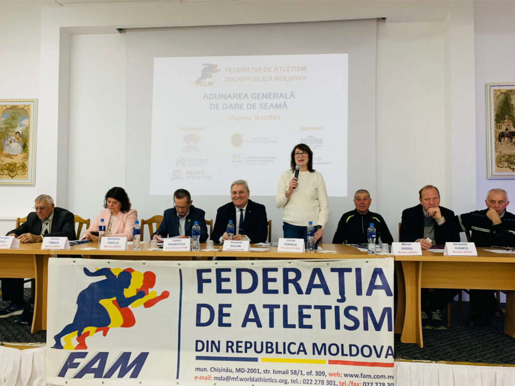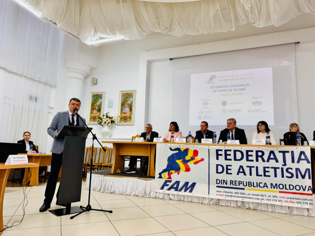 Astăzi, 18 decembrie, Federația de Atletism din Republica Moldova a ținut lucrările Adunării Generale ordinare de dare de seamă. În cadrul adunării au fost prezentate rapoartele pe activitățile organizate pe parcursul anului, financiar, al cenzorului și al Consiliului de Supraveghere. Prezenți la eveniment au fost delegații membrilor FAM din capitală și din regiuni, dar și reprezentanți ai Comitetului Național Olimpic și Sportiv, Agenției Naționale Antidoping și Ministerului Educației și Cercetării.