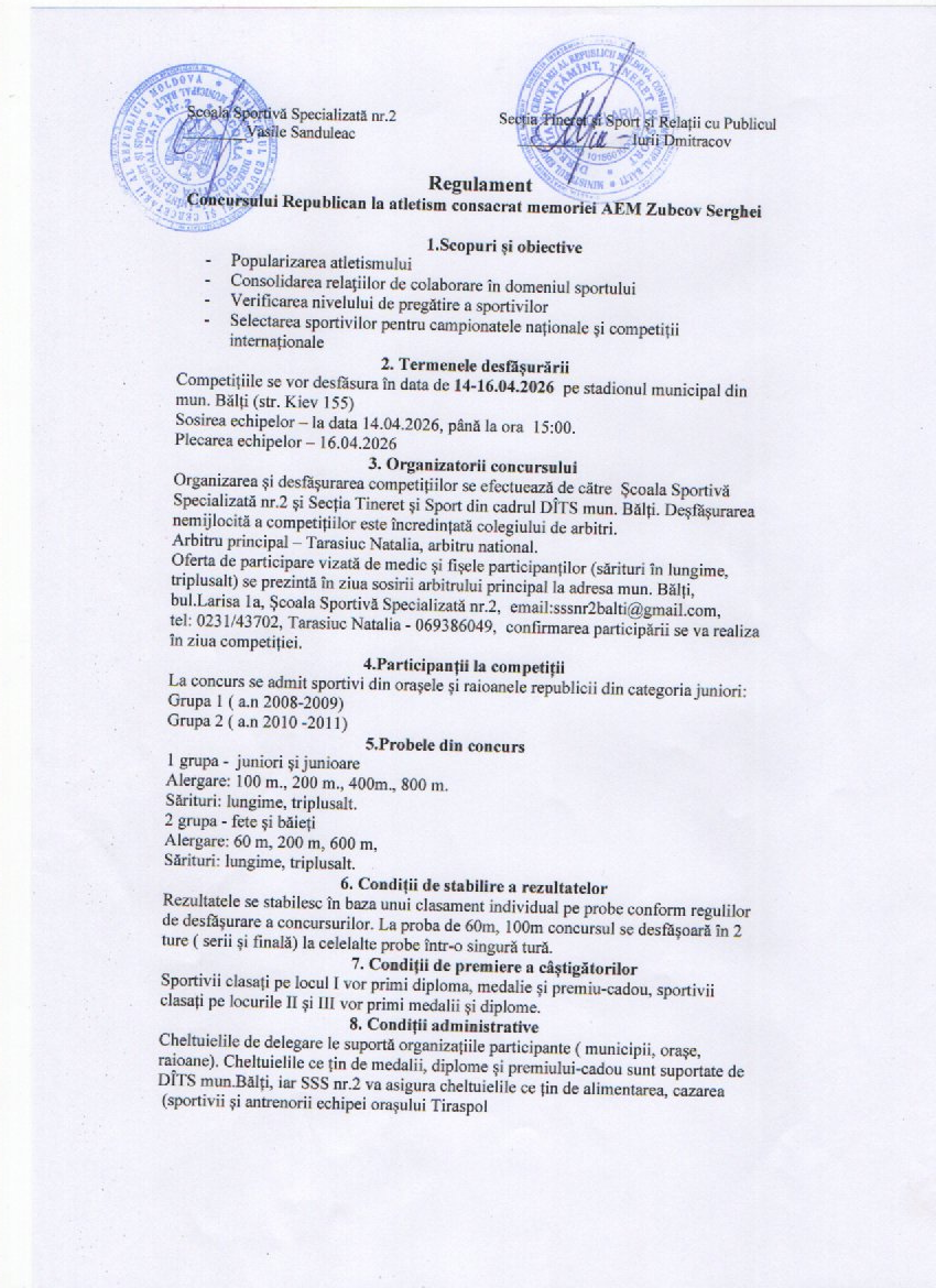 Competiții republicane la atletism consacrate memoriei AERM Zubcov Serghei 2026
